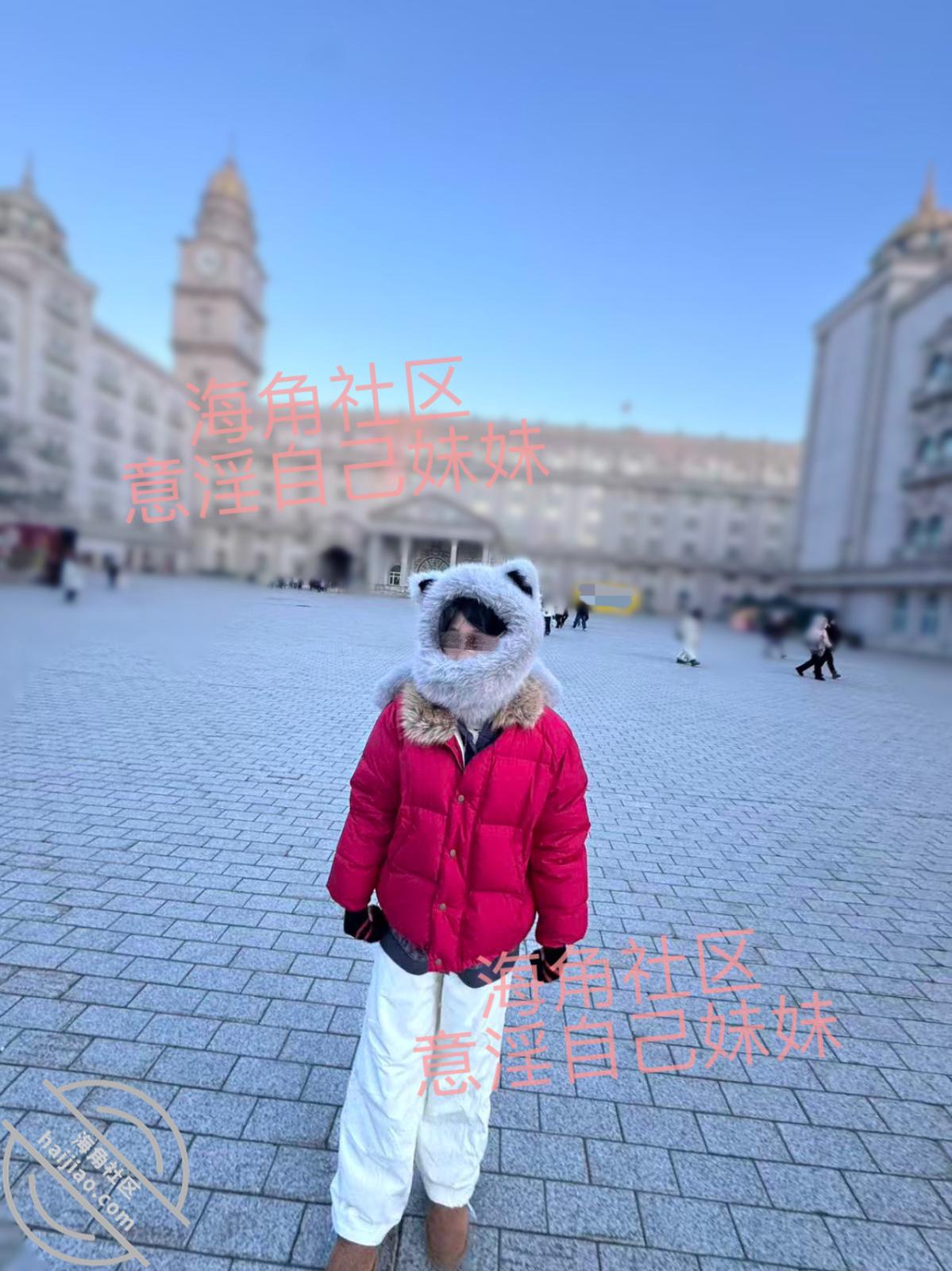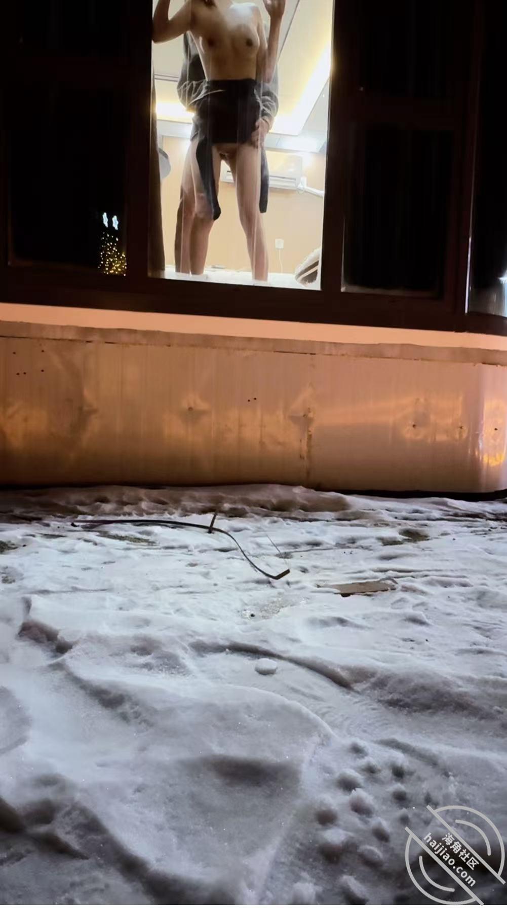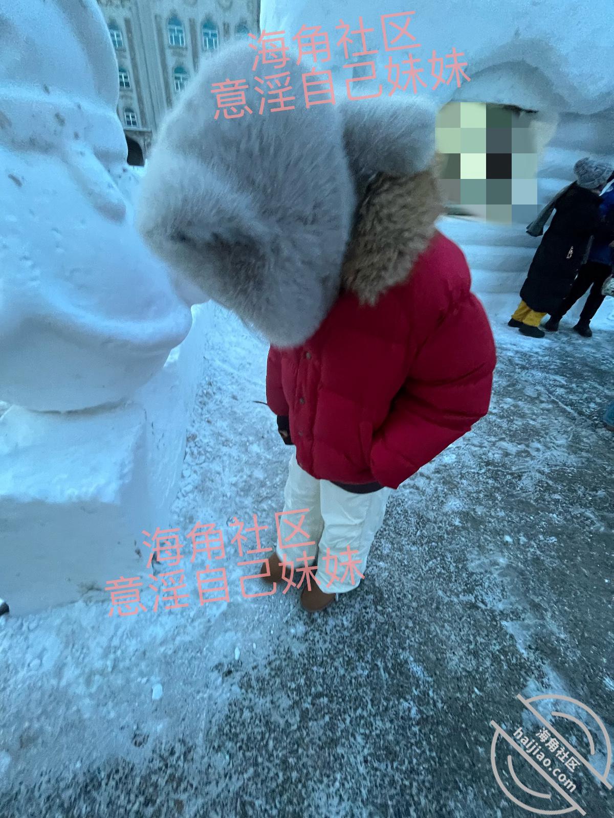 本来进来都没有留意到周围,光找入口了,一出来妹妹眼尖就瞄到有雪,兴奋的一个人跑了过去,头都不带回的,在那里沙沙沙的踩雪,她这辈子也是第一次见到雪,高兴的找不着天南地北了都,她这下冷也不冷了,把手套脱了,非要尝尝雪是触感是什么样的,不尝不知道,一尝就尖叫,说冰的自己手指都没知觉了,还是快点回到室内吧,我也想回到室内呀,室内就能和妹妹温存温存了,真想快点到天黑!回酒店好好让我的好妹妹暖和暖和